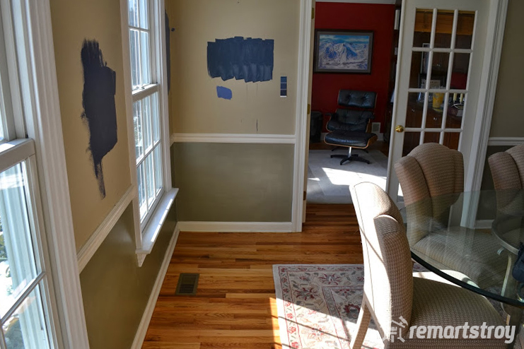 Всего за 3 дня, нашими мастерами было преобразовано столовую загородного дома наших постоянных клиентов. Была поставлена задача обновить дизайн, визуально расширить пространство помещения. Нами было принято решение установить панели, которые Вы можете увидеть на фото, а так же покрасить стены в светло-синий цвет. На фото Вы можете увидеть процесс преображения помещения в светлую и элегантную столовую.